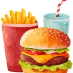 Carne, ovo, queijo, salada de alface e molho da casa com batata e refri