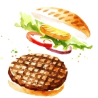 1- X-Picanha: 1 carne de picanha, ovo, bacon, queijo, salada e molho da casa