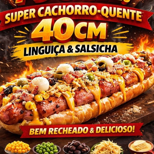 Pão, frango, linguiça e carne, queijo mussarela no maçarico, cebola crispy, batata palha e molho à sua preferência.