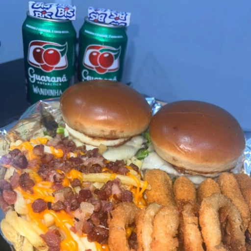 Carne, queijo, salada de alface, batata palha e molho da casa 01 batata e 01 Refri