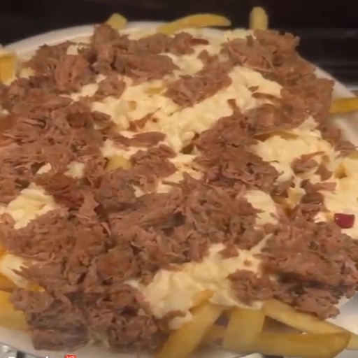 Fritas sequinhas com costelinha desfiada na medida, tudo coroado com cream cheese cremoso.